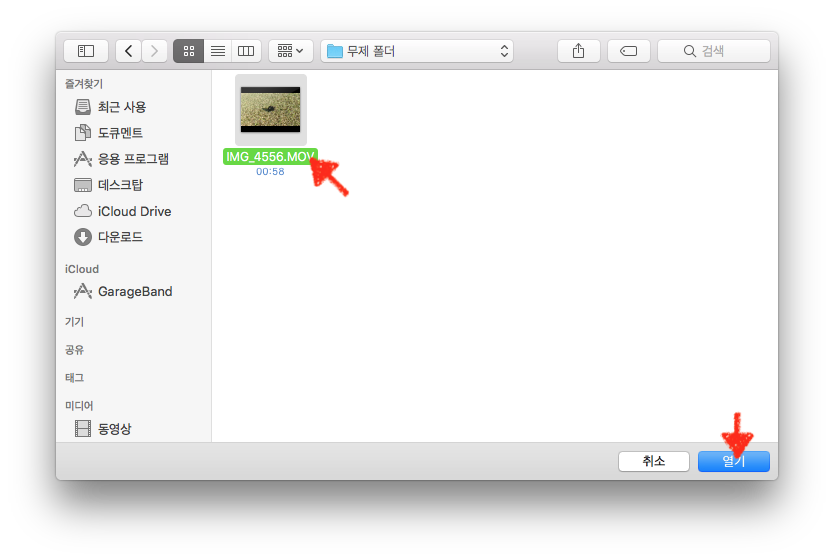 배경음과 효과음을 넣을 동영상을 선택 후 ‘열기’ 버튼을 누릅니다.