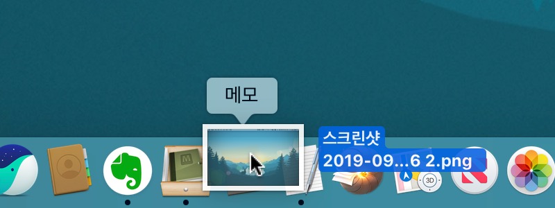 Dock에 파일을 가져갔을 때 앱 이름이 표시되지 않으면 그 앱에서는 열 수 없는 파일이라는 말인데요. 하지만 분명 열 수 있어야 하는데 열 수 없는 경우가 있습니다. 그럴 땐 command와 option을 누르고 드래그하세요. 이런 방식으로 앱을 강제로 실행할 수 있습니다.