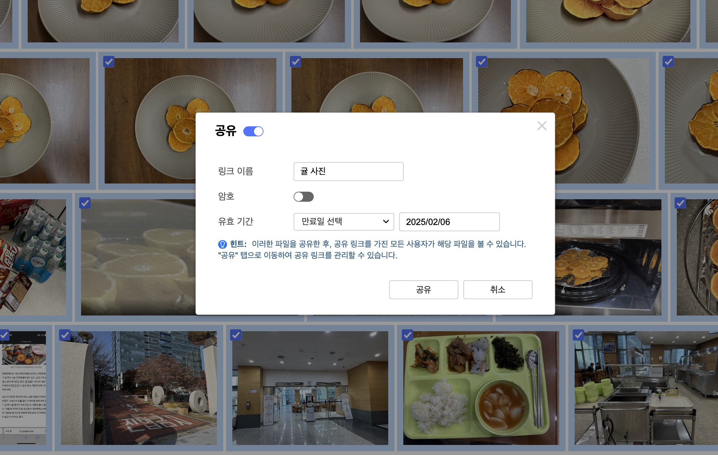 그러다 큐매지에서 공유 링크를 생성해 봤습니다. 이 역시 사실 처음에는 크게 기대하지 않았습니다. macOS에서도 파일이든, 사진 앱이든 링크 공유를 사용하고 있어서 비슷하겠거니 했죠. 하지만 큐매지가 기대 이상으로 편리한 부분이 있었습니다. 공유 링크를 만들 때 비밀번호와 만료 기간을 설정할 수 있다는 게 대표적인데 이게 정말 유용했습니다.