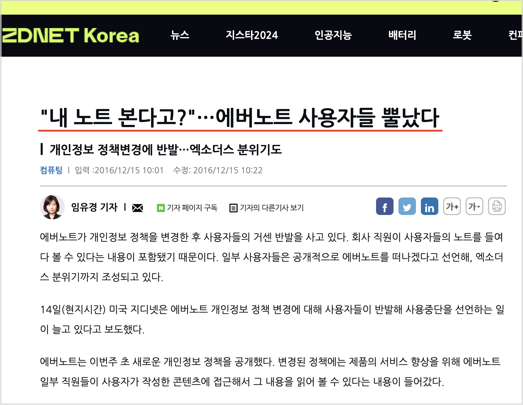 하지만 모든 기업이 이와 같지는 않습니다. 몇 년 전 에버노트에서 사용자 문서를 암호화하지 않고 들여다볼 수 있다고 했을 때처럼 생각 외로 많은 클라우드 서비스는 보안 위험이 존재합니다. 당시 에버노트 잘 쓰다 뉴스 기사 보고 손절했기 때문에 잘 압니다. 감히 마음대로 내 파일을 들여다보겠다고?