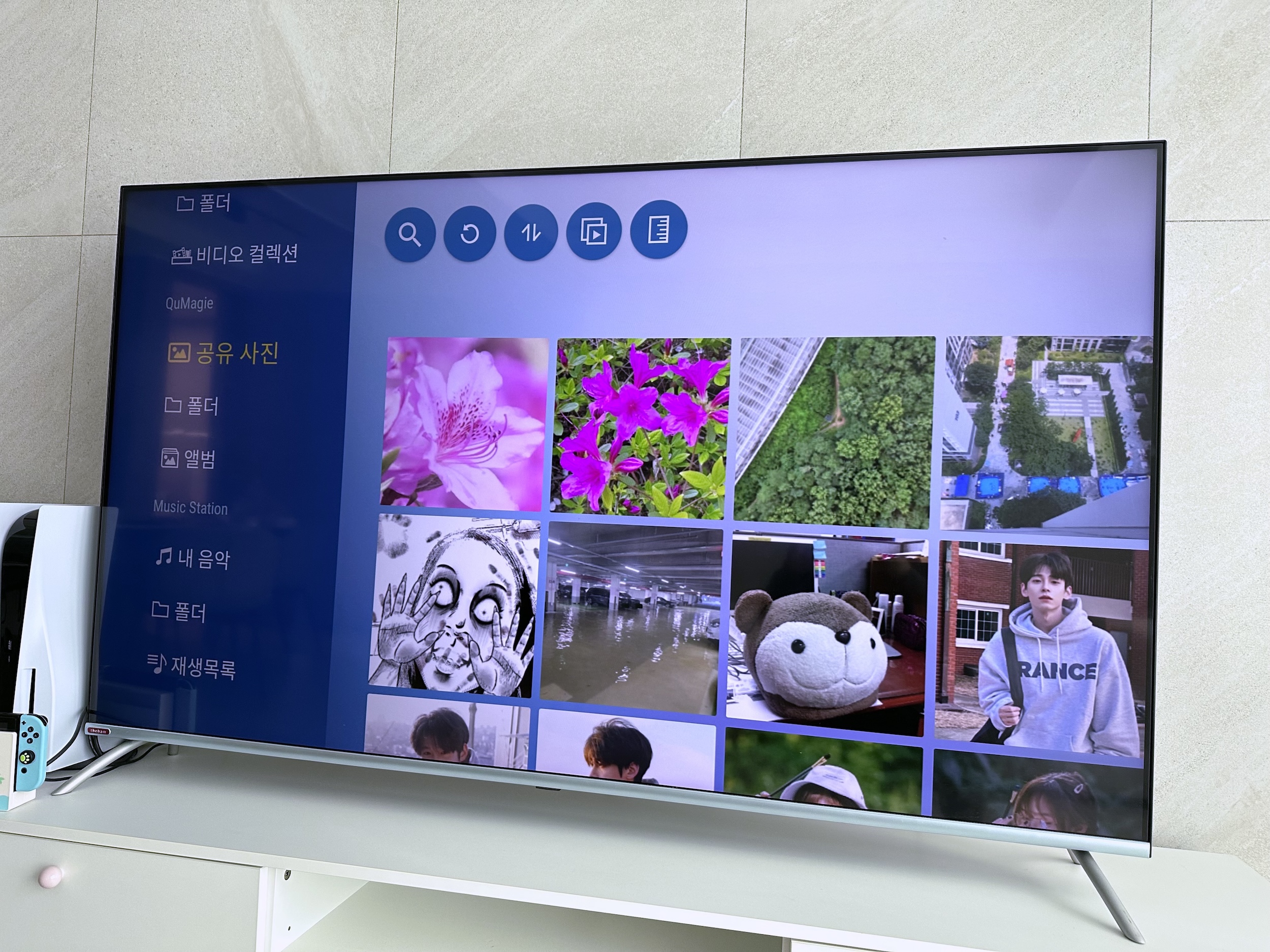 사진 라이브러리는 큐매지로 체계적으로 관리할 수도 있지만, TV를 통해 감상하고 활용하고 있습니다.