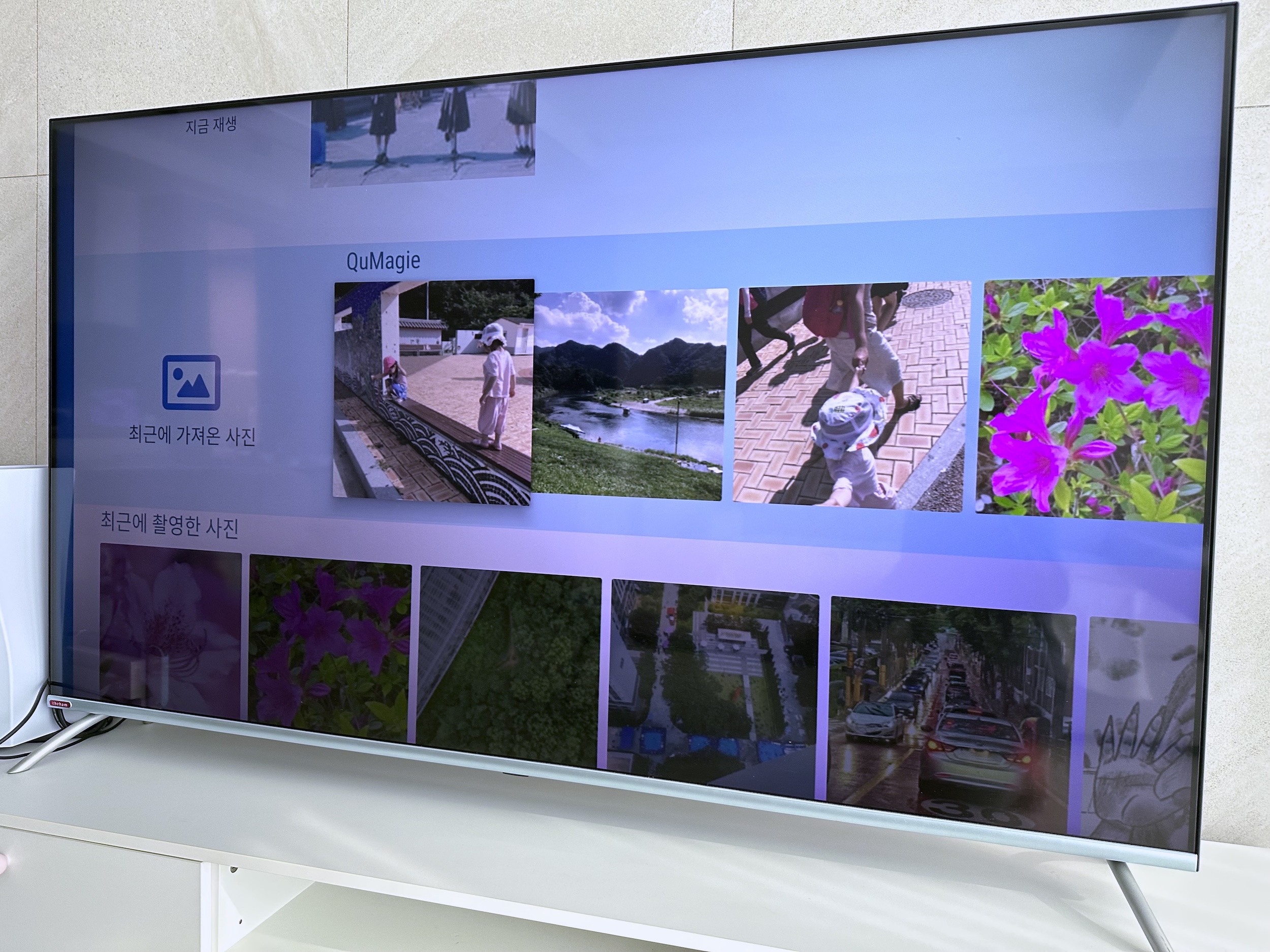 사진을 찍으면 컴퓨터에서는 관리만 하고 주로 TV에서 보는 편입니다. 집에서 아이들이 친구들과 놀러 왔을 때나, 밖에서 놀 때 찍은 사진을 큐매지에서 자동으로 정리하고 앨범으로 만들어요. 그리고 그 사진을 TV에 띄워 배경 화면이나 스크린세이버처럼 띄워두면, 아이들이나 그 부모님들도 관심을 갖고 신기하게 보곤 합니다.